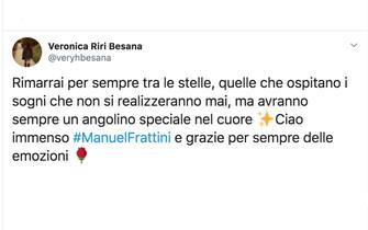 "Rimarrai per sempre tra le stelle", ha scritto su Twitter Veronica Besana, speaker di Radio Monte Carlo (foto Twitter/Veronica Riri Besana)