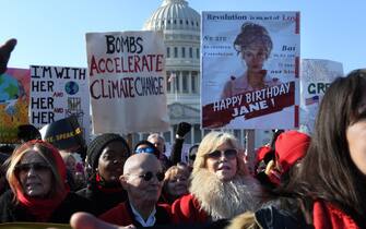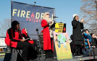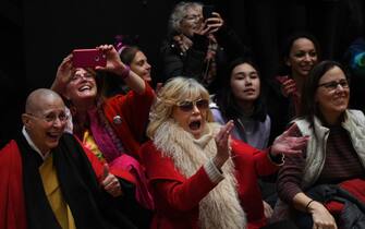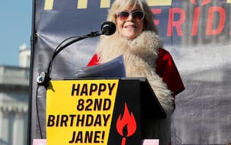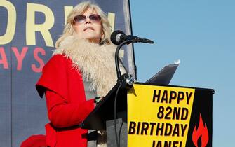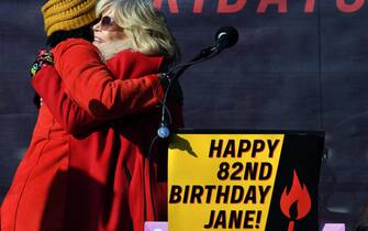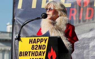 Sul palco da cui l'attrice ha parlato durante la manifestazione, c'era anche un cartello con la scritta "Buon 82esimo compleanno Jane!"
