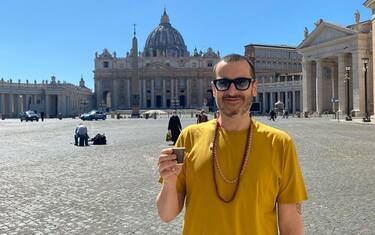 “Il mio primo caffè del bar, vicino casa, davanti a San Pietro” scrive Costantino della Gherardesca, che torna a riappropriarsi di tutto il piacere dell’espresso italiano. Immagine tratta dal profilo Instagram @costantinodellagherardesca