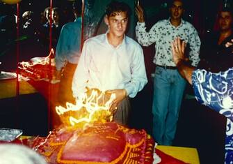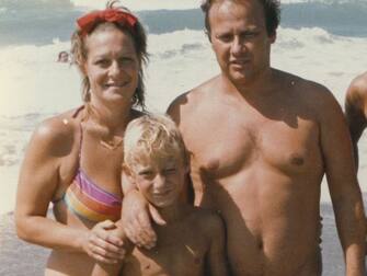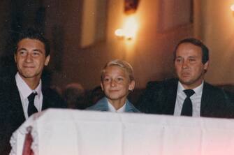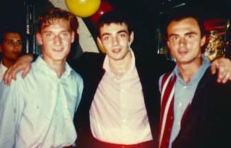 Seduto tra il padre Enzo e suo fratello maggiore Riccardo.