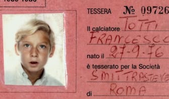 La prima fotografia del Totti calciatore: il tesserino di appartenenza alla Smit Trastevere, stagione 1985-86.