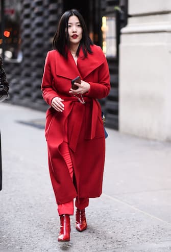 Un cappotto dal taglio blazer in rosso da mescolare a capi e accessori neri è l'ideale per essere raffinatissime e di tendenza