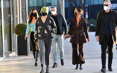 E’ stata paparazzata per le vie di Milano Gigi Hadid, neo-mamma della piccola Khai. La modella a soli 5 mesi dal parto mostra un fisico perfetto. Per le giornate milanesi Gigi ha optato per un look rilassato, un maxi cardigan che lascia intravedere la pancia già perfettamente piatta abbinato a dei jeans baggy. L’outfit è stato corredato da una cuffia verde, occhiali da sole e l’ormai immancabile mascherina. - ©Getty