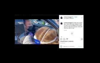 "Non sono mai stato così felice di aspettare in fila", ha scritto Arnold Schwarzenegger postando un video del suo vaccino a un drive through