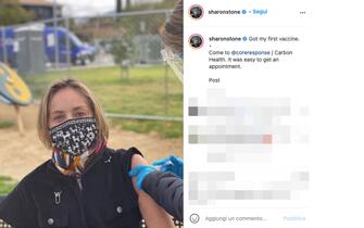 Anche l'attrice Sharon Stone ha ricevuto la prima dose del vaccino e ha invitato i fan a prenotarsi