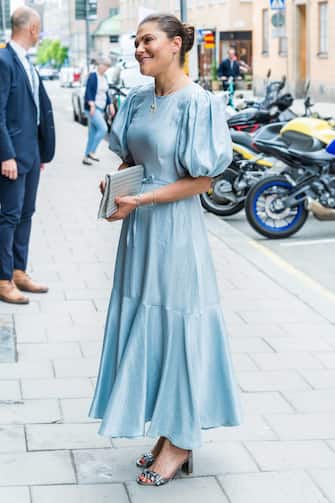 L'erede al trono svedese ha già dimostrato più volte di avere un proprio senso dello stile e della comodità, al premio letterario Astrid Lindgren alla Casa della Cultura ha sfoggiato un outfit azzurro polvere su mezzo tacco, tutto all'insegna del total comfort