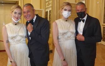 Ad accompagnare Chiara non c'era il marito Fedez, rimasto a casa con i bambini, ma la mamma Marina Di Guardo in abito da sera firmato Atelier Emé e gioielli Bulgari.