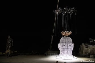 In foto: Lucia Carmela Lavia. Sullo sfondo la costruzione metallica che rappresenta la testa di Penteo