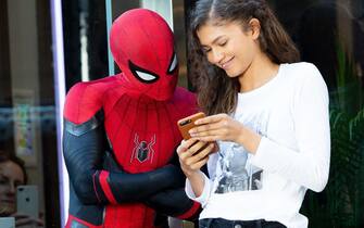 Zendaya e Tom Holland nei loro costumi di scena a New York sul set di “Spider-Man: Far From Home”, in una pausa tra una ripresa e l'altra. I due attori, apprezzatissimi dai fan ed entrambi con un vastissimo seguito sui social, appaiono molto in armonia.