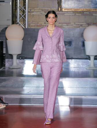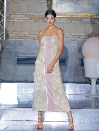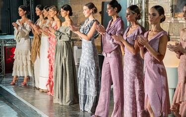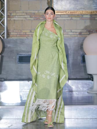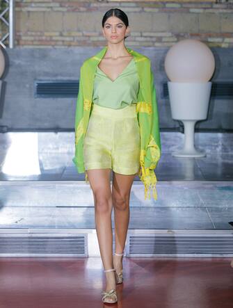 La nuova collezione P/E 2022 sfila illuminata dalle luci della passerella dell’Agorà Morelli