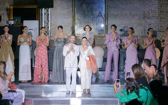 Dopo una breve intervista alla portavoce della Maison, Caterina Celestino, magistralmente condotta dalla giornalista ed esperta di moda Stefania Giacomini, si è disvelata tra le grotte mistiche d’età borbonica la collezione “Pablo” con un défilé di abiti lunghi e voluminosi, ricchi di balze accattivanti e maniche svasate, frange e preziosi dettagli realizzati con telaio a mano.