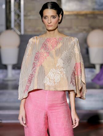 La nuova collezione P/E 2022 sfila illuminata dalle luci della passerella dell’Agorà Morelli svelando l’autentica essenza, lo stile e l’eleganza che hanno da sempre caratterizzato la Maison.