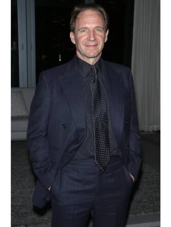 Ed ecco Ralph Fiennes che sceglie lo stesso stile, optando per un completo gessato con camicia e cravatta scure