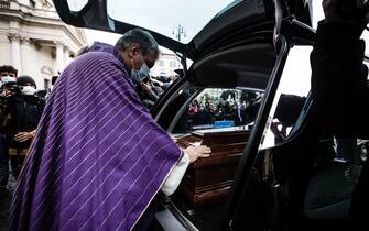 Don Walter Insero, rettore della Chiesa degli Artisti e amico della regista, dopo aver celebrato la messa ha salutato il feretro