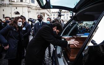 Dopo la celebrazione, Massimo Wertmuller, nipote della regista, e la figlia Maria Zulima Job si sono abbracciati prima di rendere l'ultimo omaggio al feretro