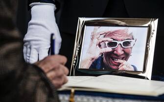 All'ingresso della Chiesa degli Artisti c'è un libro con la foto di Lina Wertmuller dove parenti e amici possono lasciare una dedica e un pensiero d'addio alla regista