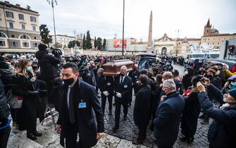 All'uscita del feretro, come all'entrata, l'applauso della folla in piazza, che si è unito a quello di amici e famigliari della regista