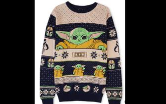 Non poteva mancare, sempre a tema Star Wars, il maglione interamente dedicato a Grogu, conosciuto anche come il Bambino (The Child in inglese) e chiamato da tutti Baby Yoda