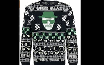 Maglione natalizio anche per l'iconica serie tv Breaking Bad: decorato con la faccia stilizzata del protagonista Walter White, la scritta Heisenberg - nome in codice del cuoco della metanfetamina -, il disegno del dollaro e i simboli della tavola periodica di Bromo e Bario (che formano insieme anche le iniziali del titolo della serie)