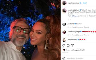 Massimo Bottura, il celebre chef stellato titolare dell'Osteria Francescana, posa con la star Beyoncè, il selfie è accompagnato dagli auguri di Natale.