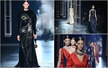 Nella sfilata le modelle sembrano divinità o imperatrici, con l'artigianato della maison che viene applicato alle loro silhouette futuristiche