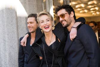 Sharon Stone alla sfilata di Dolce&Gabbana con Sam Webb, Adam Senn e Gunna re