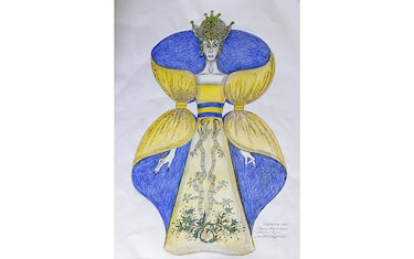 Indossate da principesse e dive come Raina Kabaivanska, ospitate nei musei di tutto il mondo, le creazioni del re dell’alta moda Roberto Capucci sono sculture plastiche, tourbillons di plissé, giochi di movimento usciti da fontane sgorganti preziosissime taffetà e sete in sfumature che persino l’arcobaleno stesso faticherebbe ad annoverare. Ritiratosi dalla ribalta delle passarelle, con le sue matite colorate Capucci continua tuttavia a dar sfogo, in maniera ancora più sfrenata, al dáimōn della sua immaginazione producendo fantasmagorici bozzetti, un florilegio di sbuffi, girandole, nastri, piume, maschere e carapaci. Questo nuovo capitolo nella lunga carriera di Capucci, su cui l’Oriente ha sempre esercitato una forte ispirazione, sboccia ora in un progetto grandioso. Per la prima volta, Capucci crea per un’opera lirica costumi che fanno impallidire perfino l’esotismo sognante dei Ballets Russes di Serghei Diaghilev.
