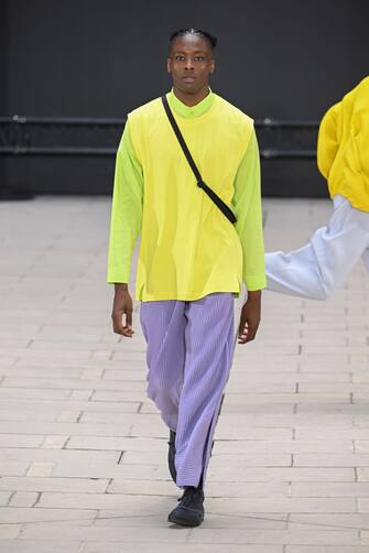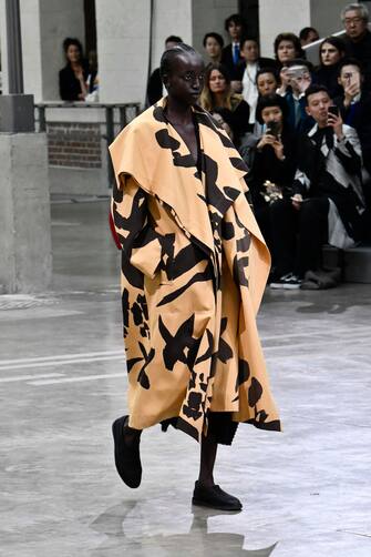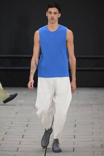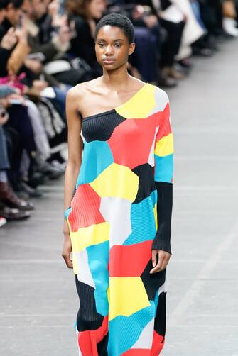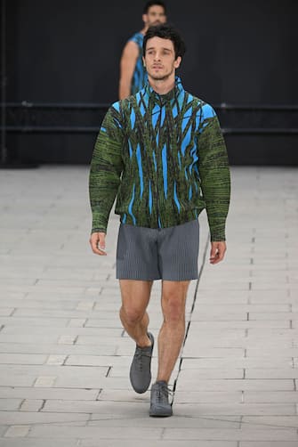 Miyake era nato il 22 aprile 1938 a Hiroshima ed era solo un bambino quando gli Stati Uniti sganciarono la bomba atomica sulla sua città, il 6 agosto 1945. Nella foto, una creazione della collezione Primavera/Estate 2023 presentata durante la settimana della moda di Parigi a giugno