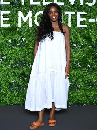 L'attrice Marlyne Barrett in occasione del 61° Festival TV di Monte Carlo indossa infradito basse arancioni