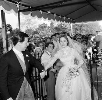 Jacqueline Bouvier un attimo dopo essere diventata la mitica Jackie Kennedy, ossia al matrimonio con John Kennedy. Ecco l’ex First Lady con un abito da sposa semplice e raffinatissimo. Immagine da Getty Images