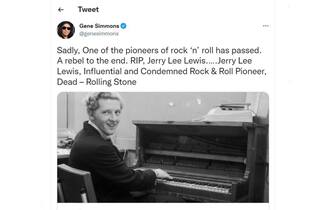 “RIP Jerry Lee Lewis. Il Killer se ne è andato. Cavolo, se sapeva suonare quel piano. Penso che ascolterò un po’ Lewis Boogie”, scrive invece lo scrittore americano Stephen King, citando un brano della rockstar del 1964