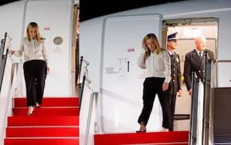 Nella prima giornata Meloni interviene a due incontri, “Food and Energy Security” e “Global Health”. Tra le poche donne a partecipare ai meeting, anche questa volta sceglie due colori: il blu navy per i pantaloni e la blusa in tinta e un rosa chiarissimo per la giacca. Le décolleté col tacco molto alto sono le stesse dell'arrivo, in pelle lucida e col cinturino alla caviglia che aiuta a tenere salda la scarpa al piede