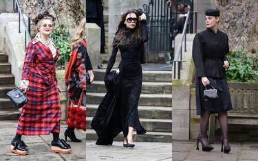 La cerimonia londinese per Vivienne Westwood si è svolta tra parole in ricordo della stilista, poesia, musica e stile eccentrico, così come avrebbe voluto l'icona della moda punk. Sir Bob Geldof (a sinistra) ha indossato un abito a scacchi, la modella e attrice Iris Law (al centro) un cappello a cuffia, la stilista Zandra Rodhes un abito di velluto con ricami e un chiodo di pelle ricoperto di decorazioni