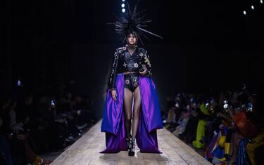 A metà del fashion show c'è un cambio d'atmosfera e sulla passerella compaiono look squisitamente punk, ricchi di dettagli scintillanti ma lussuosi, con le gemme che affiancano il metallo