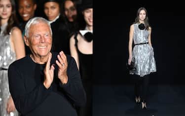 Giorgio Armani raccoglie gli applausi alla fine del fashion show. Domenica 26 febbraio tornerà a sfilare a via Borgonuovo per un altro appuntamento nel calendario della moda milanese dedicato alla collezione Giorgio Armani