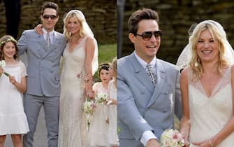 Con le damigelle con la coroncina floreale abbigliate nello stesso stile della sposa, quest'ultima con il velo asimmetrico annodato sul capo - anch'esso dal sapore vintage - e lo sposo in azzurro polvere, il wedding day di Kate Moss è diventato iconico fin da subito e ha affascinato un numero incalcolabile di spose
