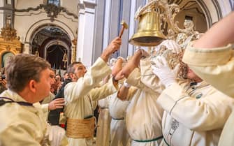 Antonio Banderas, dopo aver scattato alcuni selfie con i fan, ha indossato l'abito tradizonale religioso e si è unito alla confraternita per portare in spalla la statua della Vergine Maria