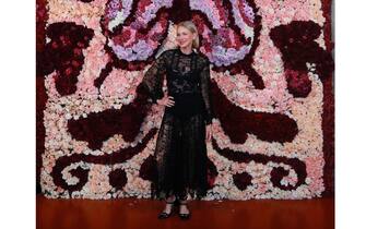 Al photocall, una parete di fiori colorati composti con un design che ricorda quello degli abiti della sfilata, l'attrice Naomi Watts