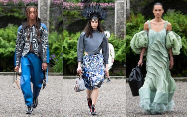 Il mondo acquatico e quello botanico sono le principali ispirazioni di una collezione sognante e visionaria composta da look elaborati e barocchi. Nicolas Ghesquière mette in scena la sua personale “fantasia italiana”
