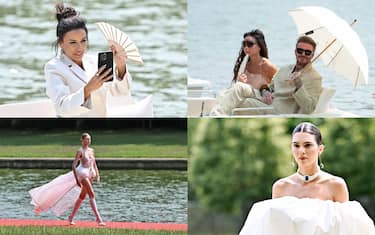 Lo scenario non è meno favoloso dei campi di grano o di quelli di lavanda in Provenza o delle saline di Arles, ambientazioni di alcune delle sfilate più famose del brand degli ultimi anni. Gli ospiti vip sono arrivati a bordo di piccole imbarcazioni leggere di legno. Da lì, hanno assistito al fashion show. In foto, Victoria e David Beckham