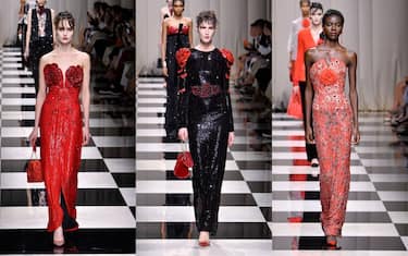 Come si intuisce dal nome, la prima ispirazione della nuova collezione Alta Moda di Giorgio Armani Privé sono le rose. Ed è con abiti ricoperti di rose rosse che le modelle hanno sfilato