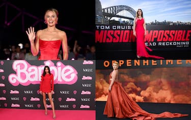 Dopo una serie infinita di uscite in rosa (e in fucsia) Margot Robbie ed America Ferrera sorprendono tutti e al photocall di Barbie davanti al London Eye indossano due look... rossi! La protagonista del film ha anche la borsetta e i sandali in tinta. La collega di set ha puntato su un modello midi di Alex Perry