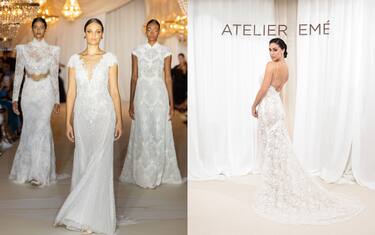 Il fascino del passato è il motivo ispiratore dell'ultima collezione di Atelier Emé, romantica, femminile e lussuosa. All'evento milanese presenti la Rodriguez, futura sposa, e le sorelle Ferragni con Francesca in prima fila, che ha indossato l'abito bianco meno di una settimana fa