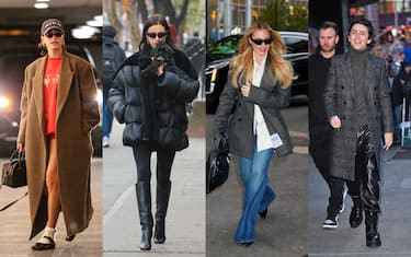 Moda, arriva il freddo: i cappotti e i piumini delle star, da Hailey Bieber a Chalamet