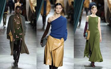 Questa di Kim Jones è una collezione dall'eleganza rilassata, fatta di linee morbide e armonie cromatiche gentili. Gli accostamenti di colori sono soft, tutto si sviluppa con delicatezza. Le borse, portate tutte e mano, si accartocciano con nonchalance tra le dita di chi le regge. Su di esse, la firma di Silvia Venturini Fendi che per il brand cura il design degli accessori (e la linea maschile)