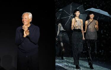 Sorrisi e giravolte con gli ombrelli aperti sotto la neve artificiale che fiocca, sottile e fitta, nell'Armani Silos. Per Giorgio Armani la moda continua ad essere un'occasione imperdibile di gioia e meraviglia al cospetto della bellezza del mondo