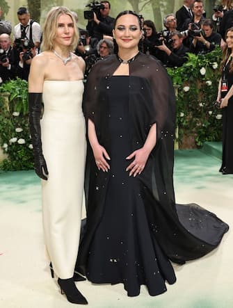 Arrivano in coppia Rebecca Hall e Morgan Spector, lui in rosso con una giacca con un fiore vistoso, lei con un look di Danielle Frankel che racconta l'ispirazione floreale che permea l'intero Met Gala. Tutto da ammirare lo stile dell'attrice che si è dipinta i fiori dell'abito anche sulla pelle. Voto: 8 (per entrambi)