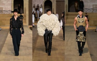 Anche questa collezione, al pari di quella femminile Alta Moda 2024, è il risultato di uno studio profondo e attento del costume e della tradizione della Sardegna, una terra dalla storia antichissima che ha ispirato i due designer italiani alla ricerca di un equilibrio tra il gusto sofisticato e opulento delle lavorazioni Dolce & Gabbana e gli abiti locali tipici, realizzati con tecniche che portate avanti da fini artigiani del posto