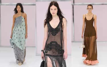 Le trasparenze dominano la quasi totalità delle creazioni di questa collezione. Anche le calzature, decoratissime in qualche caso, rivelano la pelle, come i calzini corti con applicazioni gioiello, una nuova probabile ossessione degli appassionati di stile e tendenze