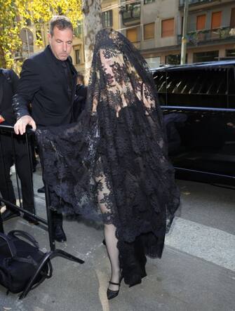 La città di Milano ha accolto con tutti gli onori anche Madonna, invitata da Dolce & Gabbana per assistere a una sfilata che si è svolta al Metropol, teatro della presentazione di una collezione influenzata dal suo stile leggendario. Eccola, vestita di nero, col volto coperto da un velo di pizzo e con la corona sul capo